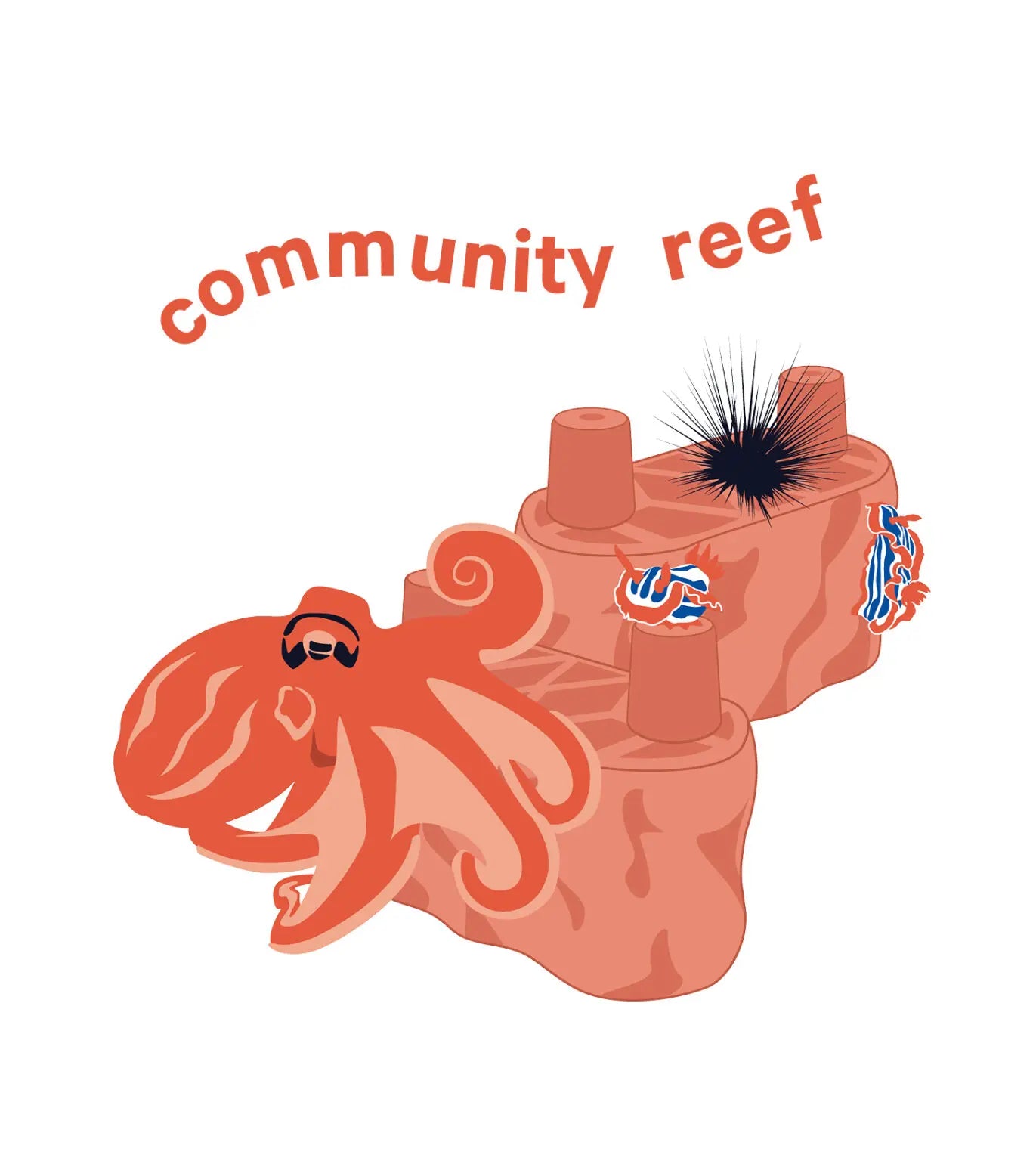 Welcome to Mollusk Manor! Sponsor a home for mollusks and foster the growth of diverse creatures like nudibranchs, octopuses, and clams. Help create an ideal sanctuary within our Community Reef.